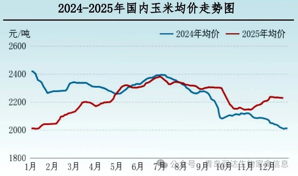 周内全国玉米均价缓慢下滑,周均价环比下跌。其中,东北、西北产区价格稳中小幅走低,主因下游环节对价格接受度有限,成本压力较大;华北产区主流稳,少数市场涨跌10-20元/吨;南方市场需求偏弱,以执行合同为主,市场成交价下跌10-30元/吨。