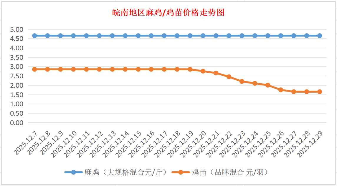 鸡病专业网独家信息:2025年12月29日皖南地区817-麻鸡行情最新走势