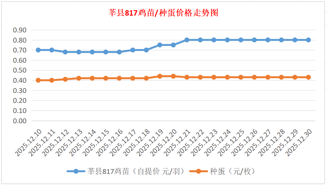 种蛋:昨日种蛋0.42-0.43元/枚。