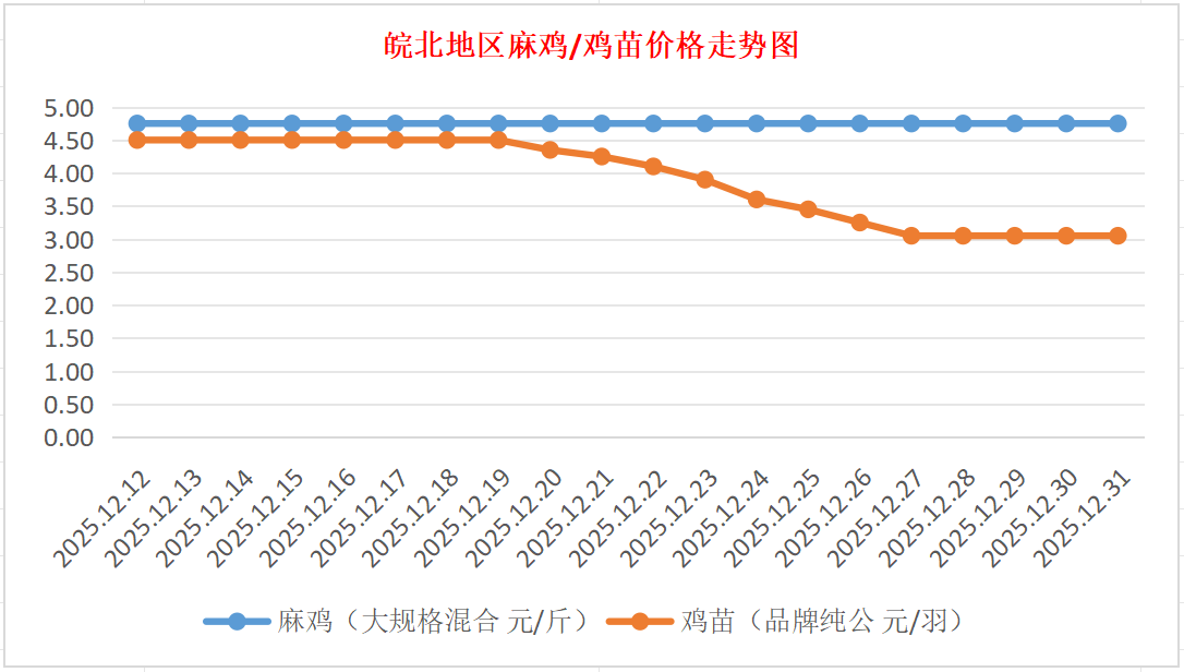 鸡病专业网独家信息:2025年12月31日皖北地区817-麻鸡行情最新走势
