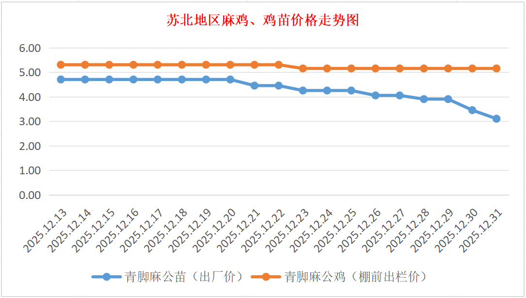 苏北地区麻鸡、鸡苗价格走势图(图源:鸡病专业网)