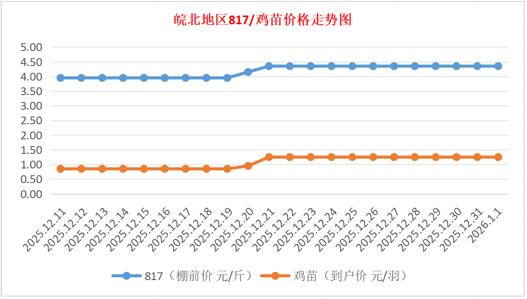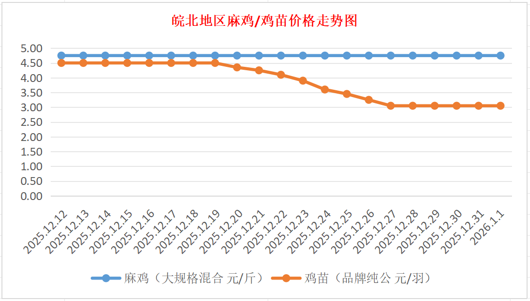 鸡病专业网独家信息:2026年1月1日皖北地区817-麻鸡行情最新走势