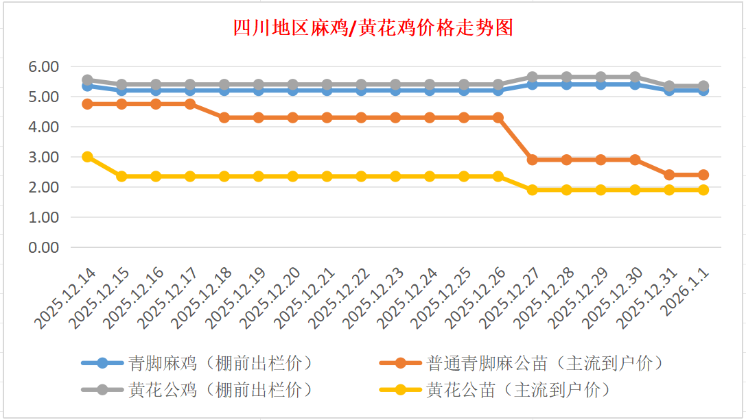 普通青脚麻公苗:价格稳定,主流到户价2.20-2.60元/羽,稳。