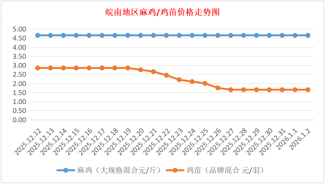 鸡病专业网独家信息:2026年1月2日皖南地区817-麻鸡行情最新走势