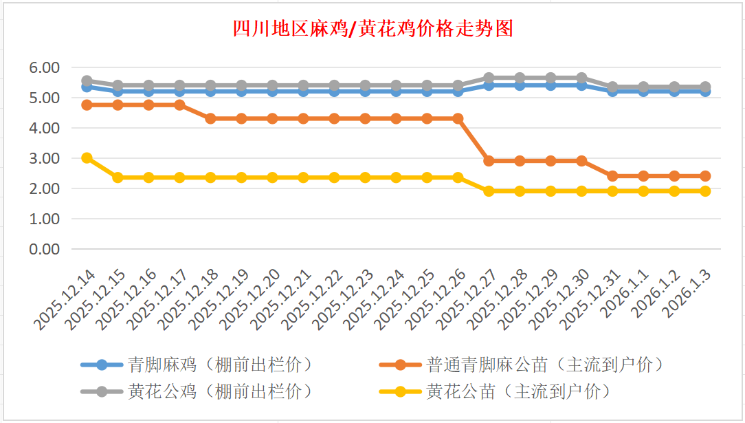 品牌青脚麻公苗:价格稳定,主流到户价2.60-3.20元/羽,稳。