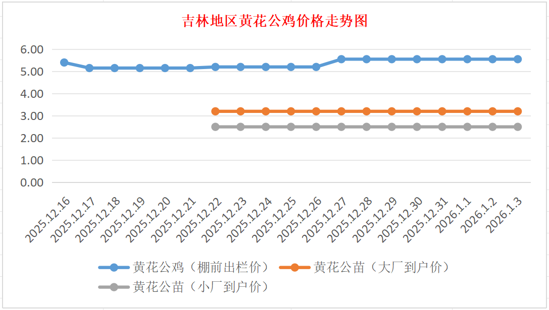 1月3日吉林黄花公鸡、鸡苗价格行情