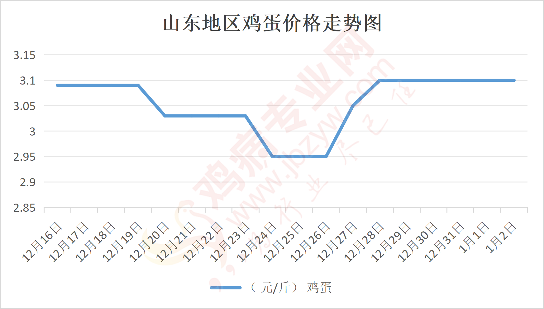 鸡病专业网消息:1月2日,山东地区莱阳鸡蛋3.15元/斤,稳;青岛鸡蛋3.15元/斤,稳;诸城鸡蛋3.15元/斤,稳;安丘鸡蛋3.05元/斤,稳;昌乐鸡蛋3.05元/斤,稳;寿光鸡蛋3.05元/斤,稳;昌邑鸡蛋3.05元/斤,稳;高密鸡蛋3.15元/斤,稳;青州鸡蛋3.05元/斤,稳;临朐鸡蛋3.05元/斤,稳;莱州鸡蛋3.15元/斤,稳;威海鸡蛋3.15元/斤,稳;临沭鸡蛋3.1元/斤,稳;沂水鸡蛋3.1元/斤,稳;沂南鸡蛋3.1元/斤,稳;莒南鸡蛋3.1元/斤,稳;兰陵县鸡蛋3.1元/斤,稳;日照鸡蛋3.1元/斤,稳;莒县鸡蛋3.1元/斤,稳;日照辛萁商贸鸡蛋3.1元/斤,稳;泗水鸡蛋价格90元/斤,稳;济宁、汶上鸡蛋价格90元/斤,稳;梁山、东平红蛋价格90元/斤,稳;枣庄滕州地区鸡蛋混码主流到户90元/30斤,稳;泰安地区新泰鸡蛋价格90元/斤,稳;菏泽地区曹县主流到户90元/斤,稳;成武鸡蛋价格90元/斤,稳;单县到户90元/斤,稳;聊城莘县90元/斤,稳。