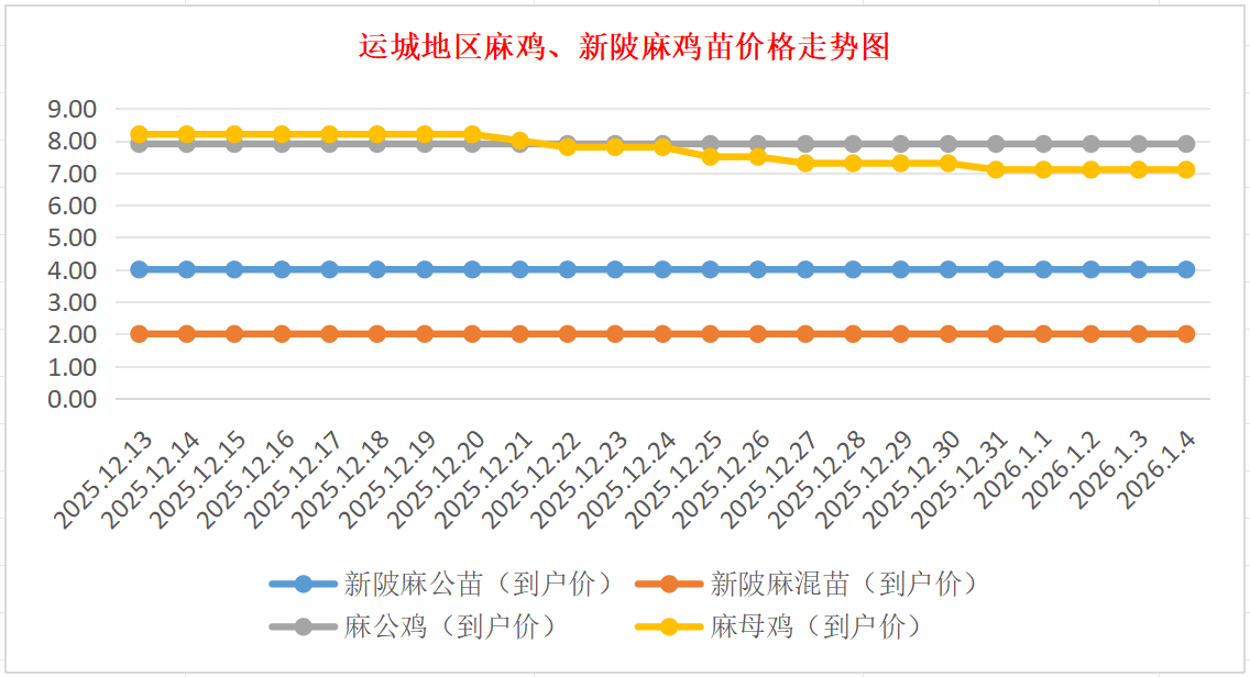 1月4日山西(运城)麻鸡、新陂麻鸡苗价格行情