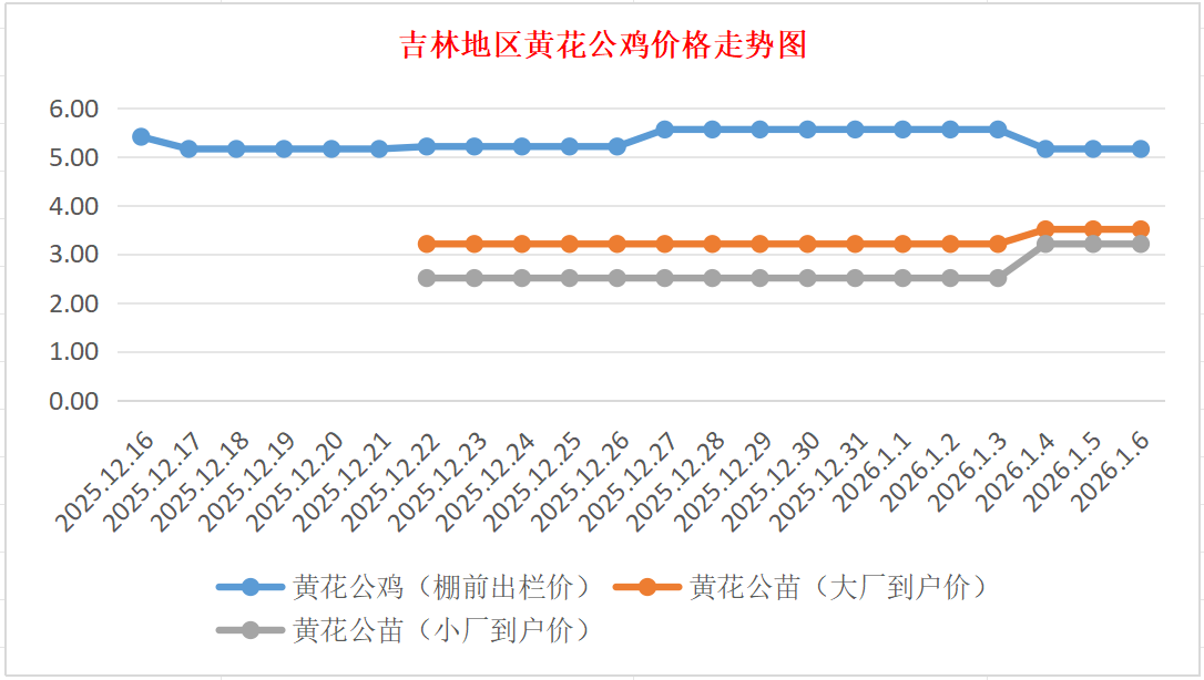 黄花公苗:价格稳定,大厂到户价3.50元/羽,小厂到户价3.20元/羽,稳。
