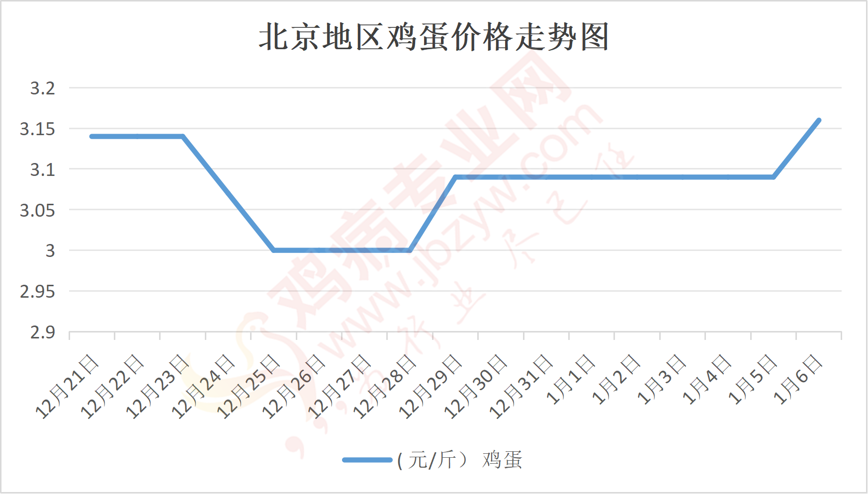 鸡病专业网消息:1月6日,北京大洋路鸡蛋主流批发价格139-140元/44斤,涨,到货6台车,成交灵活,走货正常;回龙观鸡蛋139元/44斤,涨;顺义石门鸡蛋139元/44斤,涨。