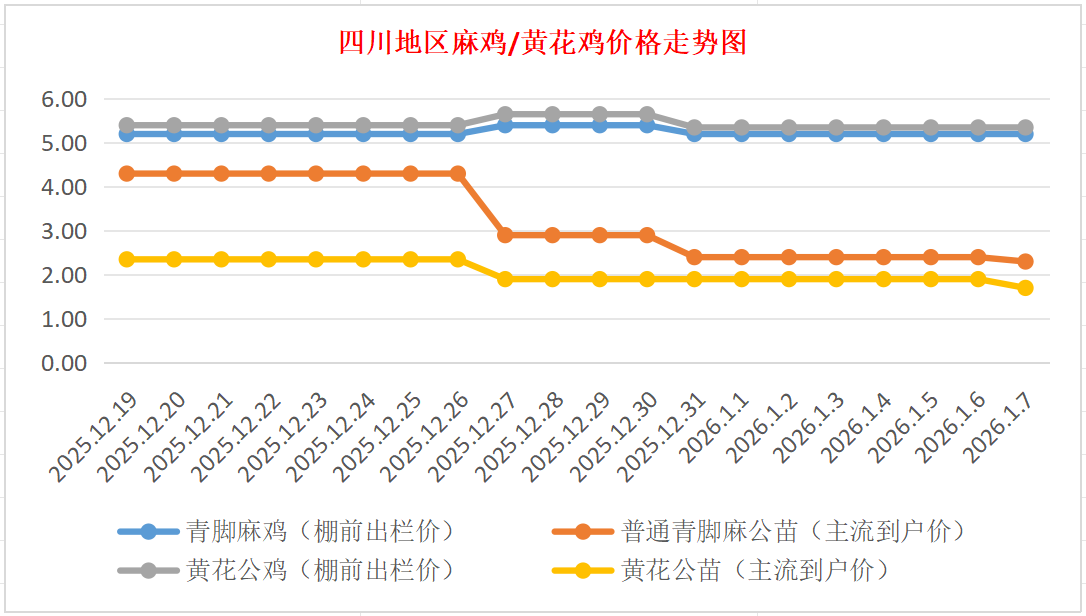 普通青脚麻公苗:价格下滑,主流到户价2.20-2.40元/羽,落。