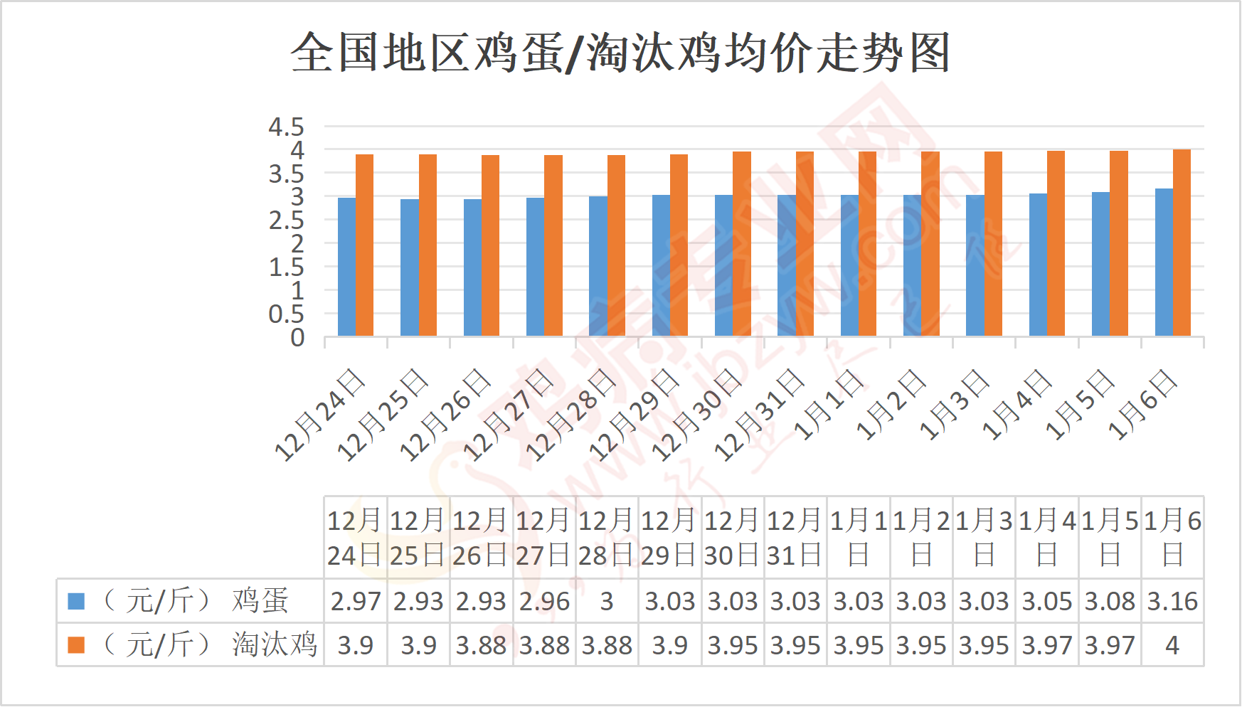 河北地区:衡水粉蛋2.96元/斤,与昨日相比涨,淘汰鸡3.8-4.1元/斤;