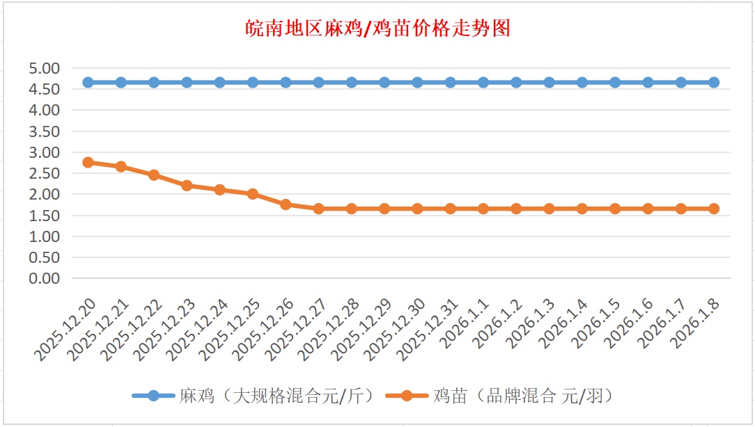 鸡病专业网独家信息:2026年1月8日皖南地区817-麻鸡行情最新走势