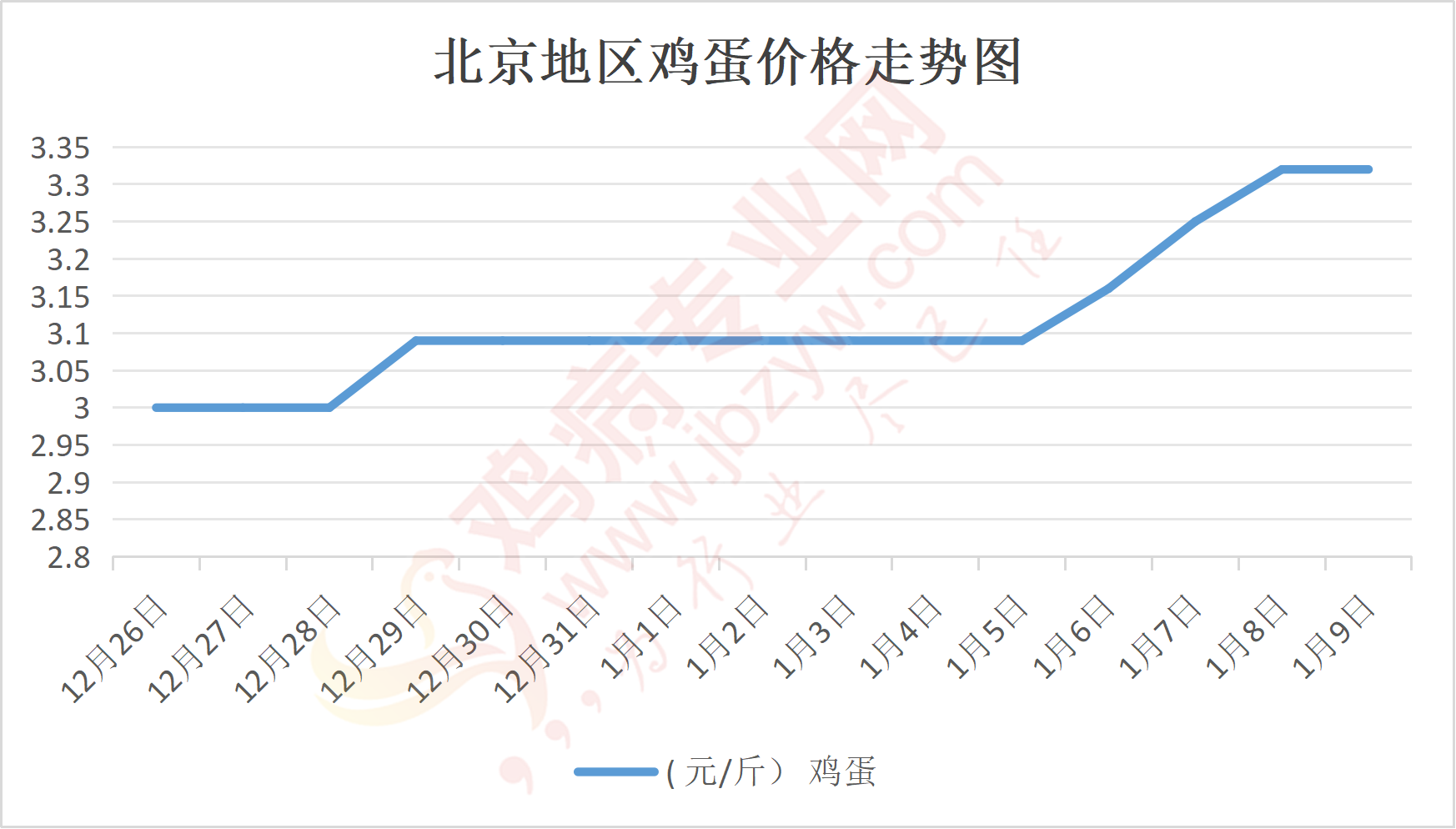 鸡病专业网消息:1月9日,北京大洋路鸡蛋主流批发价格146-147元/44斤,稳,到货5台车,成交灵活,走货正常;回龙观鸡蛋146元/44斤,稳;顺义石门鸡蛋146元/44斤,稳。
