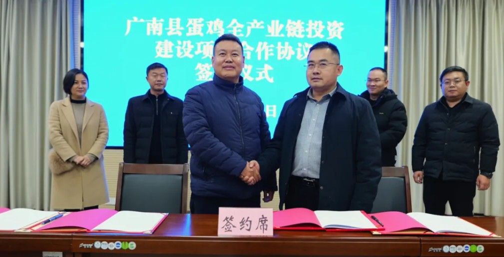 1月7日下午,云南广南县举行蛋鸡全产业链投资建设项目合作协议签约仪式。副县长沈斌与常德市中晟农牧有限公司董事长张希光签定协议。