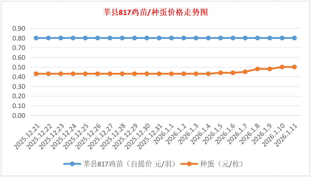 种蛋:昨日种蛋0.49-0.50元/枚。