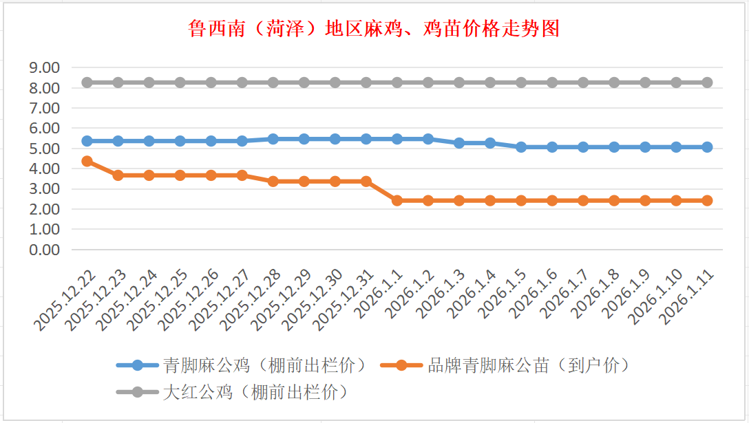 菏泽地区麻鸡、鸡苗价格走势图(来源:鸡病专业网)