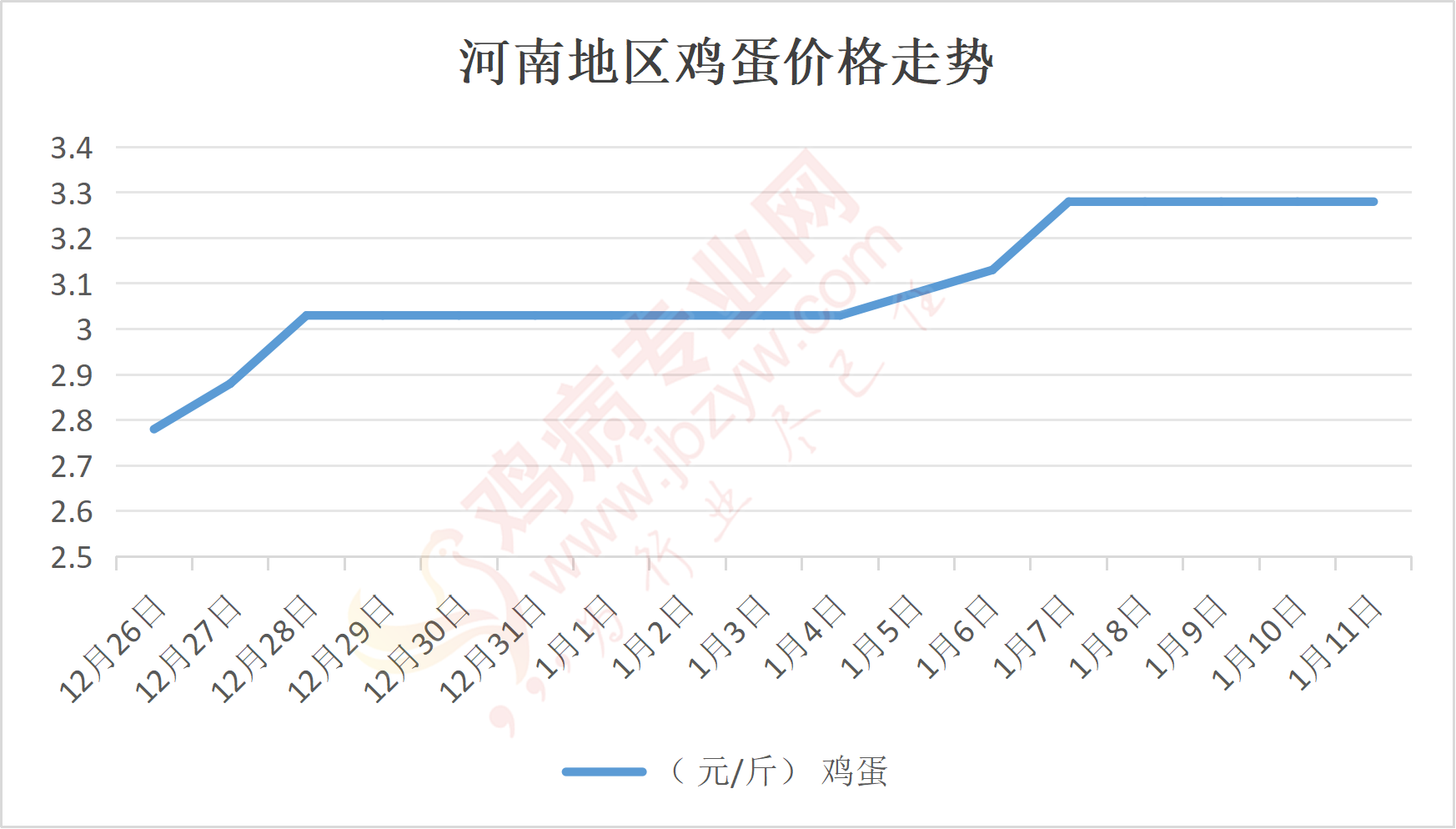 鸡病专业网消息:1月11日,河南郑州鸡蛋3.3元/斤,稳;新密鸡蛋3.3元/斤,稳;荥阳鸡蛋3.3元/斤,稳;中牟鸡蛋3.3元/斤,稳;周口鸡蛋3.25元/斤,稳;商丘鸡蛋98元/30斤,稳;鹤壁鸡蛋3.25元/斤,稳;汝州鸡蛋3.25元/斤,稳;开封鸡蛋97-98元/30斤,稳;漯河鸡蛋3.25元/斤,稳;漯河临颍鸡蛋3.25元/斤,稳;许昌鸡蛋3.3元/斤,稳;南阳鸡蛋3.25元/斤,稳;南阳邓州鸡蛋3.25元/斤,稳;新乡鸡蛋3.25元/斤,稳;安阳鸡蛋3.25元/斤,稳;新郑鸡蛋3.3元/斤,稳;登封鸡蛋3.3元/斤,稳;平顶山鸡蛋3.3元/斤,稳;驻马店鸡蛋3.3元/斤,稳;三门峡鸡蛋3.3元/斤,稳;焦作鸡蛋3.25元/斤,稳;信阳鸡蛋3.25元/斤,稳;濮阳鸡蛋3.25元/斤,稳。