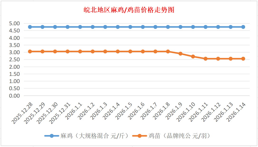 鸡病专业网独家信息:2026年1月14日皖北地区817-麻鸡行情最新走势