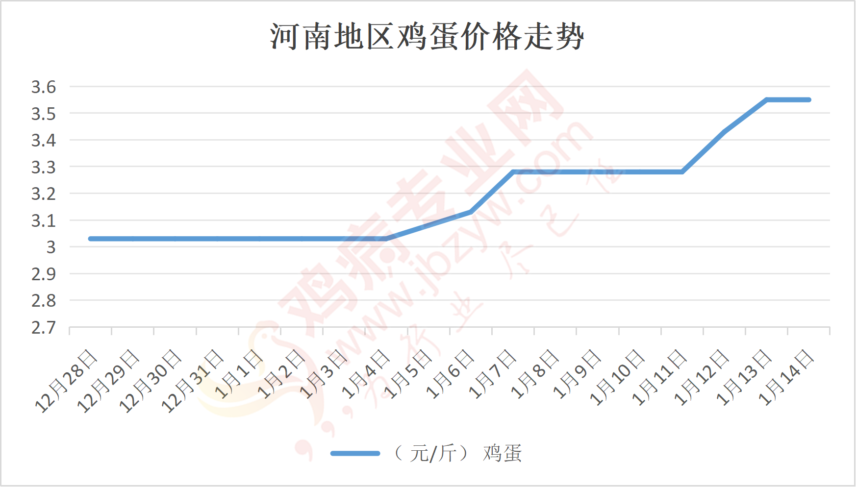 鸡病专业网消息:1月14日,河南郑州鸡蛋3.55元/斤,稳;新密鸡蛋3.55元/斤,稳;荥阳鸡蛋3.55元/斤,稳;中牟鸡蛋3.55元/斤,稳;周口鸡蛋3.55元/斤,稳;商丘鸡蛋105-106元/30斤,稳;鹤壁鸡蛋3.55元/斤,稳;汝州鸡蛋3.55元/斤,稳;开封鸡蛋106元/30斤,稳;漯河鸡蛋3.55元/斤,稳;漯河临颍鸡蛋3.55元/斤,稳;许昌鸡蛋3.55元/斤,稳;南阳鸡蛋3.55元/斤,稳;南阳邓州鸡蛋3.55元/斤,稳;新乡鸡蛋3.55元/斤,稳;安阳鸡蛋3.55元/斤,稳;新郑鸡蛋3.55元/斤,稳;登封鸡蛋3.55元/斤,稳;平顶山鸡蛋3.55元/斤,稳;驻马店鸡蛋3.55元/斤,稳;三门峡鸡蛋3.55元/斤,稳;焦作鸡蛋3.55元/斤,稳;信阳鸡蛋3.55元/斤,稳;濮阳鸡蛋3.55元/斤,稳。