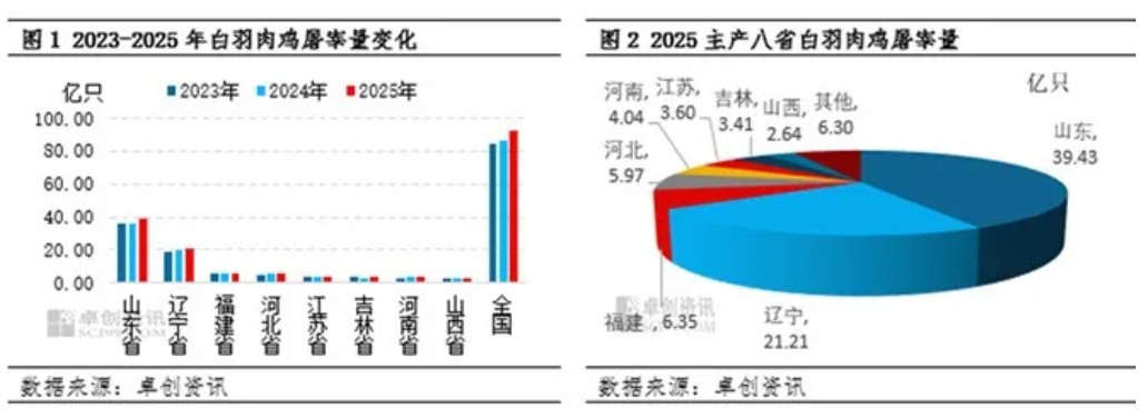 行业规模化集约化进程提速,2025年全国白羽肉鸡屠宰量92.94亿只