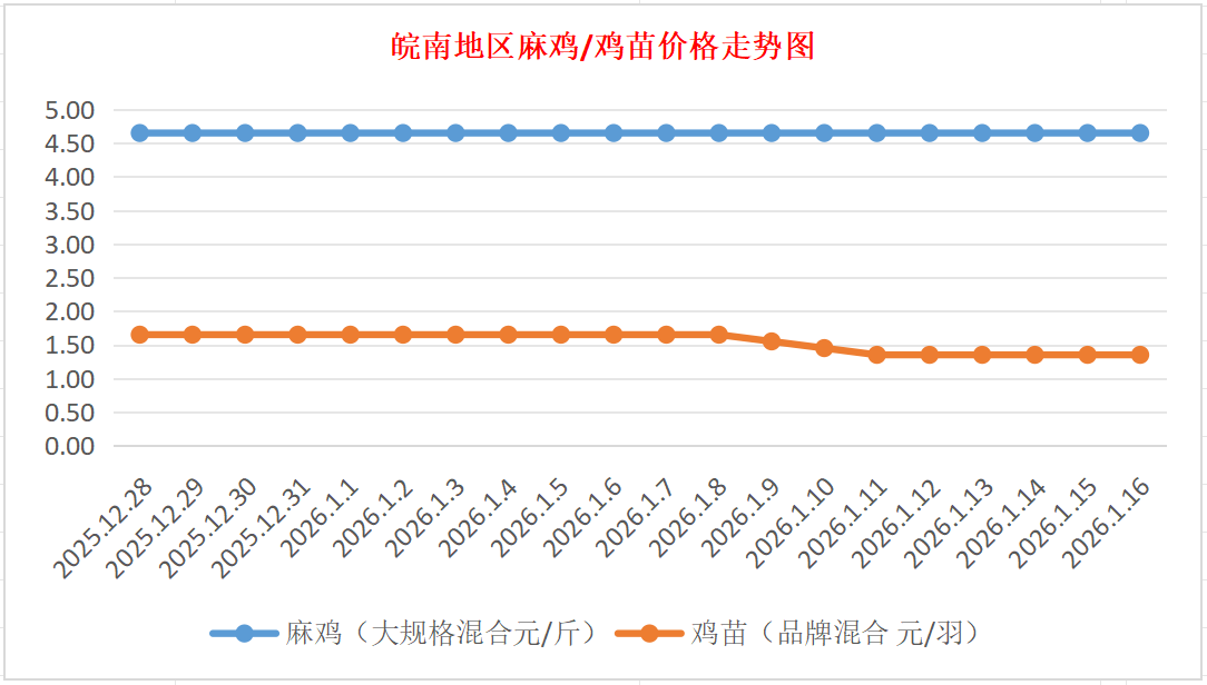 鸡病专业网独家信息:2026年1月16日皖南地区817-麻鸡行情最新走势
