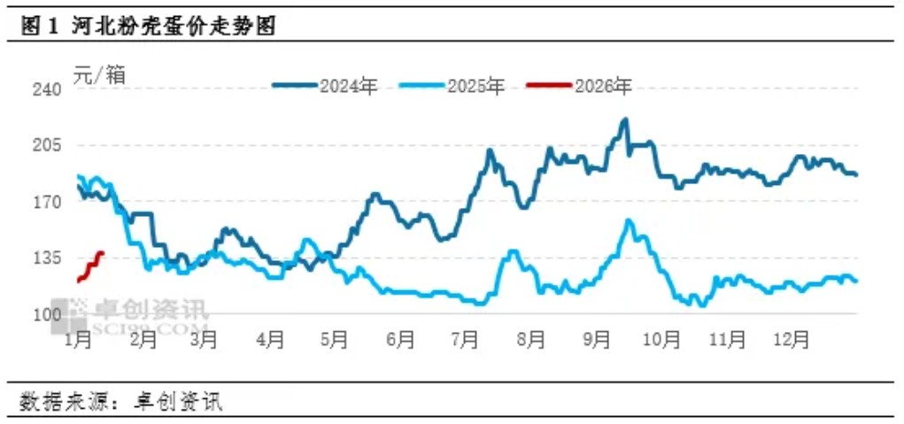 1月上旬河北粉壳鸡蛋价格在供需双重利好下,结束低位盘整开启强势反弹。当前蛋价短期趋稳,但春节前需求尚未完全释放,中旬仍有上涨空间。不过随着后期库存释放及外销需求减弱,下旬蛋价下跌风险将有所上升。