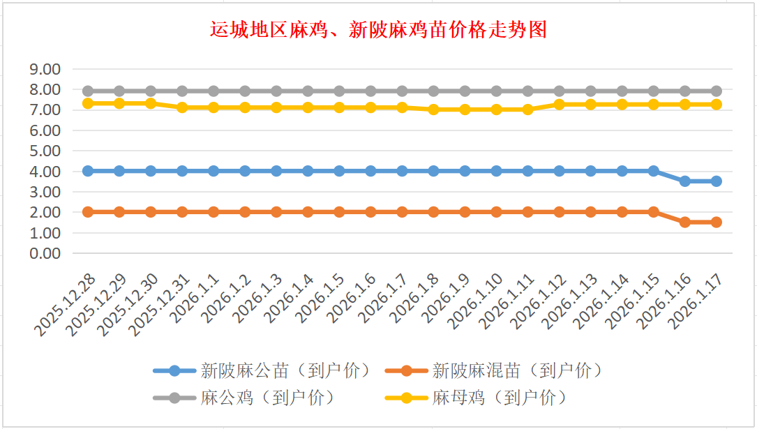 运城地区麻鸡、新陂麻鸡苗价格走势图(来源:鸡病专业网)