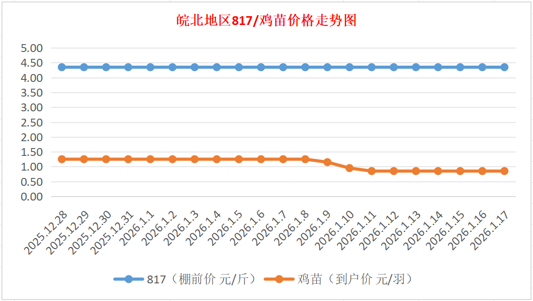 鸡病专业网独家信息:2026年1月17日皖北地区817-麻鸡行情最新走势