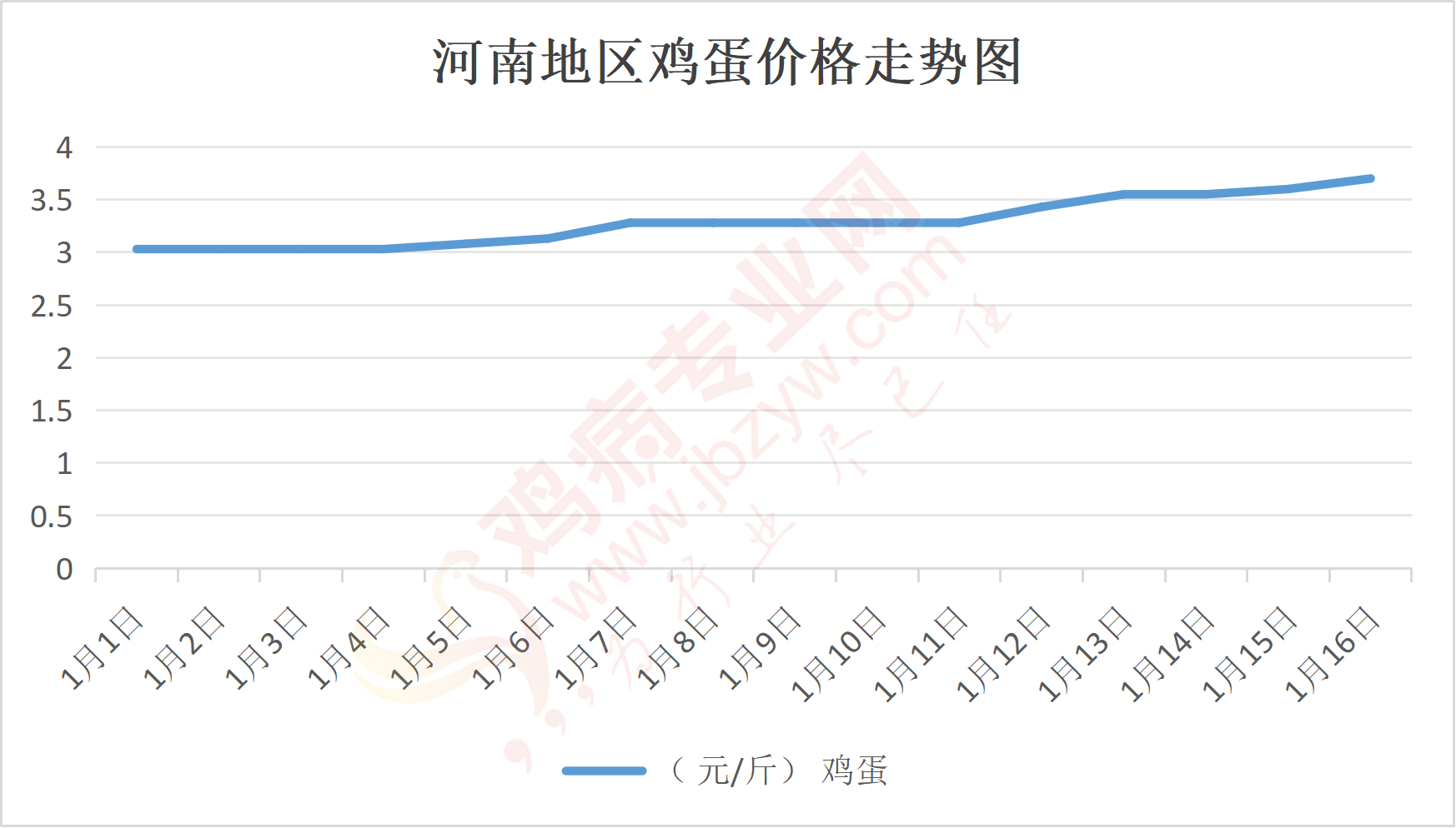鸡病专业网消息:1月16日,河南郑州鸡蛋3.7元/斤,涨;新密鸡蛋3.7元/斤,涨;荥阳鸡蛋3.7元/斤,涨;中牟鸡蛋3.7元/斤,涨;周口鸡蛋3.7元/斤,涨;商丘鸡蛋111元/30斤,涨;鹤壁鸡蛋3.7元/斤,涨;汝州鸡蛋3.7元/斤,涨;开封鸡蛋111元/30斤,涨;漯河鸡蛋3.7元/斤,涨;漯河临颍鸡蛋3.7元/斤,涨;许昌鸡蛋3.7元/斤,涨;南阳鸡蛋3.7元/斤,涨;南阳邓州鸡蛋3.7元/斤,涨;新乡鸡蛋3.7元/斤,涨;安阳鸡蛋3.7元/斤,涨;新郑鸡蛋3.7元/斤,涨;登封鸡蛋3.7元/斤,涨;平顶山鸡蛋3.7元/斤,涨;驻马店鸡蛋3.7元/斤,涨;三门峡鸡蛋3.7元/斤,涨;焦作鸡蛋3.7元/斤,涨;信阳鸡蛋3.7元/斤,涨;濮阳鸡蛋3.7元/斤,涨。