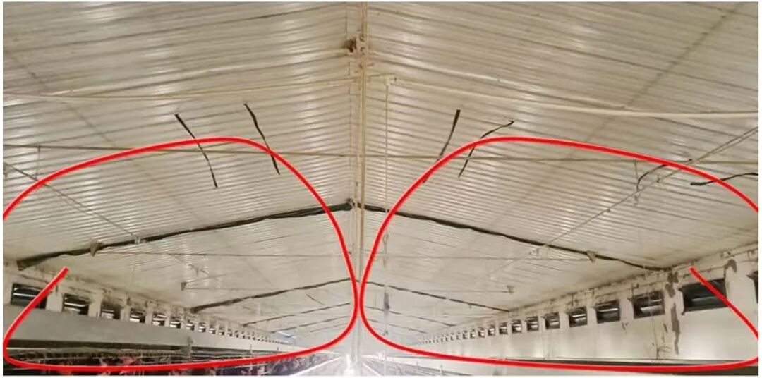 对应进风口过大,风速减慢,冷空气易快速下沉,预温不足直接吹向鸡群,同时导致舍内空气流通不畅,粉尘与病原无法有效排出,加剧局部冷热应激与舍内温差;