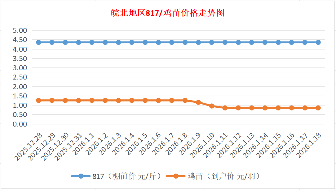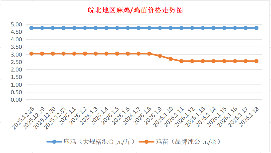 鸡病专业网独家信息:2026年1月18日皖北地区817-麻鸡行情最新走势