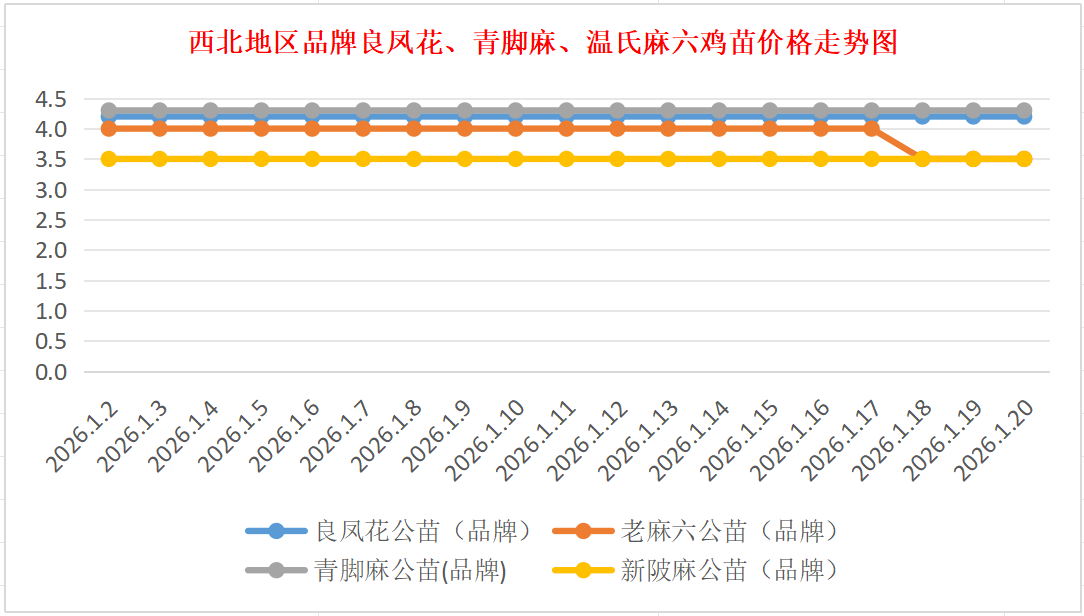 品牌新陂麻:价格稳定,到户价公苗4.50元/羽,稳。