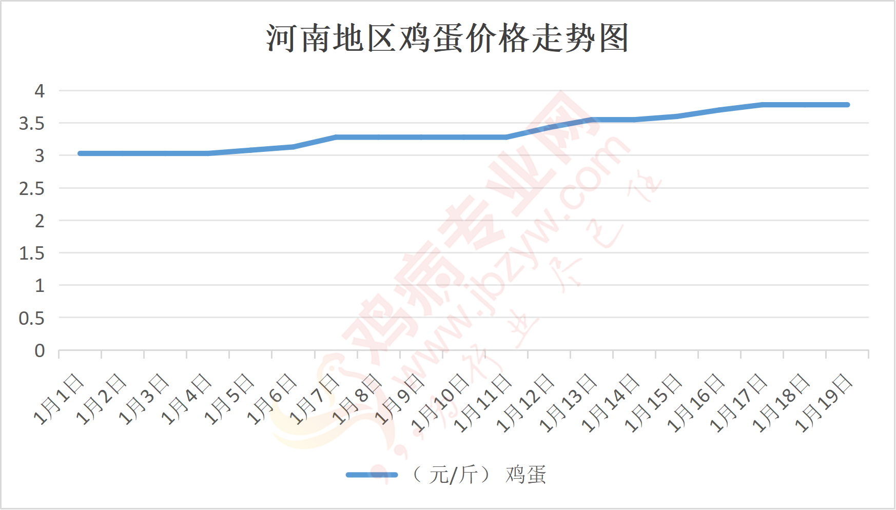 鸡病专业网消息:1月19日,河南郑州鸡蛋3.8元/斤,稳;新密鸡蛋3.8元/斤,稳;荥阳鸡蛋3.8元/斤,稳;中牟鸡蛋3.8元/斤,稳;周口鸡蛋3.8元/斤,稳;商丘鸡蛋112-113元/30斤,稳;鹤壁鸡蛋3.8元/斤,稳;汝州鸡蛋3.8元/斤,稳;开封鸡蛋113元/30斤,稳;漯河鸡蛋3.75元/斤,稳;漯河临颍鸡蛋3.8元/斤,稳;许昌鸡蛋3.8元/斤,稳;南阳鸡蛋3.8元/斤,稳;南阳邓州鸡蛋3.8元/斤,稳;新乡鸡蛋3.75元/斤,稳;安阳鸡蛋3.75元/斤,稳;新郑鸡蛋3.8元/斤,稳;登封鸡蛋3.8元/斤,稳;平顶山鸡蛋3.8元/斤,稳;驻马店鸡蛋3.75元/斤,稳;三门峡鸡蛋3.8元/斤,稳;焦作鸡蛋3.8元/斤,稳;信阳鸡蛋3.75元/斤,稳;濮阳鸡蛋3.75元/斤,稳。