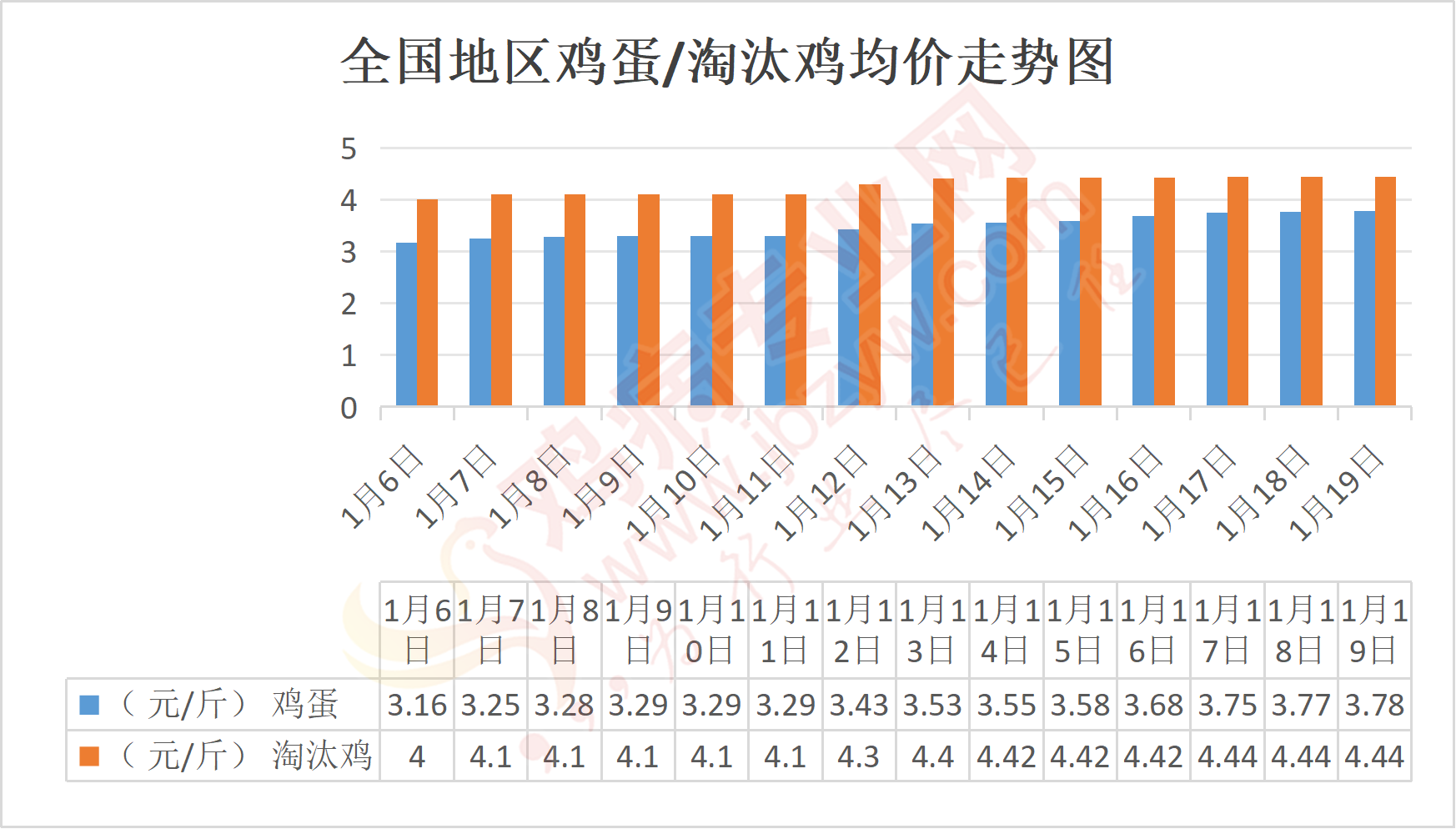 湖北地区:新洲鸡蛋3.8元/斤,与昨日相比持平,淘汰鸡4-4.6元/斤;