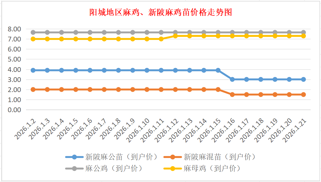 阳城地区麻鸡、新陂麻鸡苗价格走势图(来源:鸡病专业网)