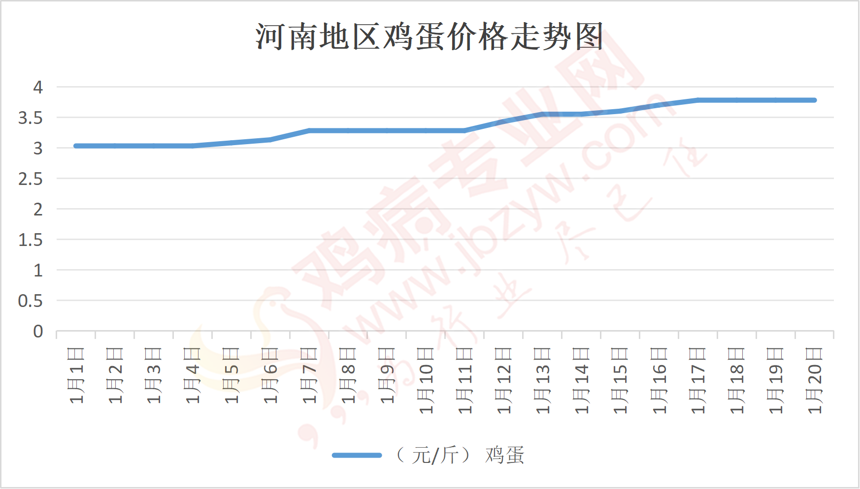 鸡病专业网消息:1月20日,河南郑州鸡蛋3.8元/斤,稳;新密鸡蛋3.8元/斤,稳;荥阳鸡蛋3.8元/斤,稳;中牟鸡蛋3.8元/斤,稳;周口鸡蛋3.8元/斤,稳;商丘鸡蛋112-113元/30斤,稳;鹤壁鸡蛋3.8元/斤,稳;汝州鸡蛋3.8元/斤,稳;开封鸡蛋113元/30斤,稳;漯河鸡蛋3.75元/斤,稳;漯河临颍鸡蛋3.8元/斤,稳;许昌鸡蛋3.8元/斤,稳;南阳鸡蛋3.8元/斤,稳;南阳邓州鸡蛋3.8元/斤,稳;新乡鸡蛋3.75元/斤,稳;安阳鸡蛋3.75元/斤,稳;新郑鸡蛋3.8元/斤,稳;登封鸡蛋3.8元/斤,稳;平顶山鸡蛋3.8元/斤,稳;驻马店鸡蛋3.75元/斤,稳;三门峡鸡蛋3.8元/斤,稳;焦作鸡蛋3.8元/斤,稳;信阳鸡蛋3.75元/斤,稳;濮阳鸡蛋3.75元/斤,稳。
