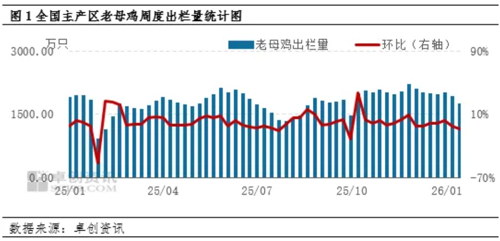 综合来看,2026年1月养殖户惜售情绪主导,老母鸡出栏量止增回落。2月多因素影响,养殖端出栏节奏或被迫加快,加速蛋鸡行业产能优化。