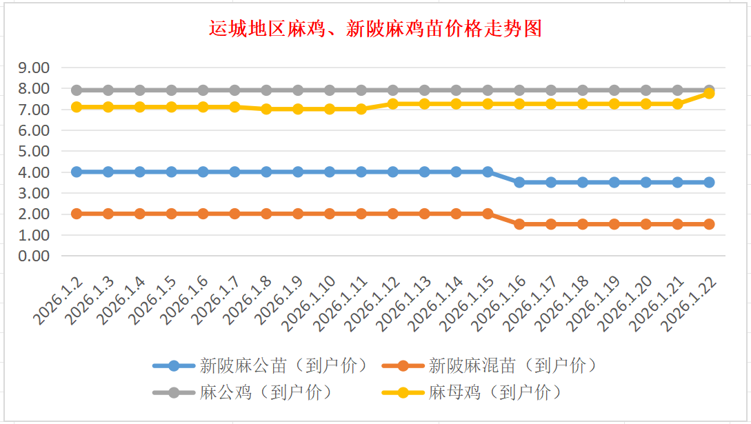 运城地区麻鸡、新陂麻鸡苗价格走势图(来源:鸡病专业网)