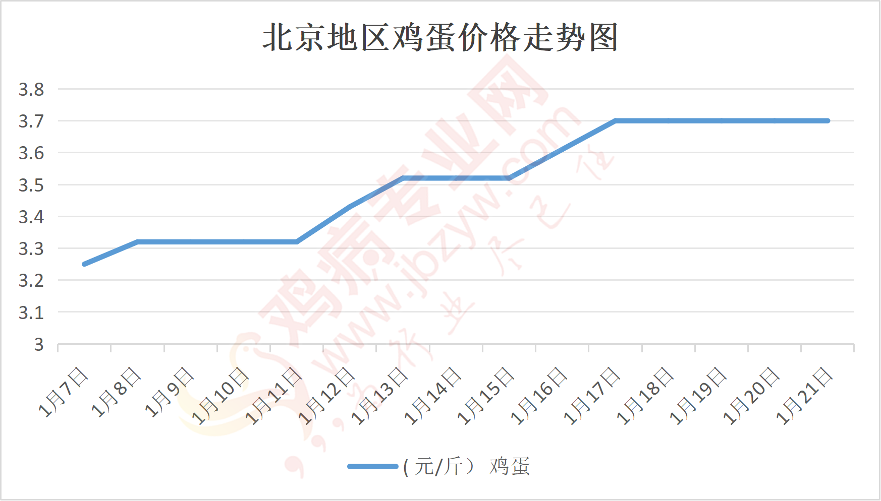 鸡病专业网消息:1月21日,北京大洋路鸡蛋主流批发价格163-164元/44斤,稳,到货4台车,成交灵活,走货一般;回龙观鸡蛋163元/44斤,稳;顺义石门鸡蛋163元/44斤,稳。