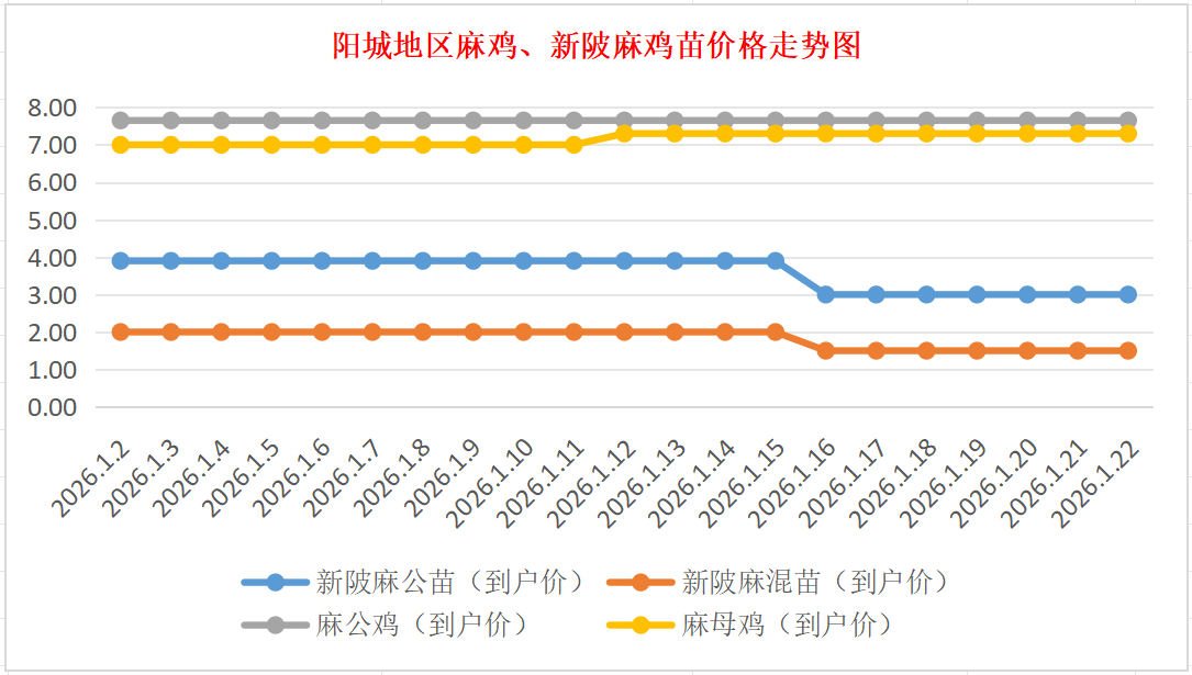 阳城地区麻鸡、新陂麻鸡苗价格走势图(来源:鸡病专业网)
