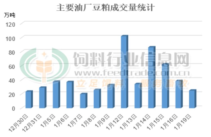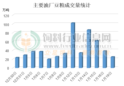 近期国内主要油厂豆粕成交较好,多日出现成交放量,即使近日成交量出现下降,但单日成交量仍维持在20万吨以上的较好水平。随着春节的临近,在畜禽养殖需求较大的情况下饲料养殖场提货需求较大,很多都安排车辆到工厂提货,不少工厂还出现了限量提货的情况,这增强工厂对豆粕的挺价意愿,对价格提供一定的支撑。