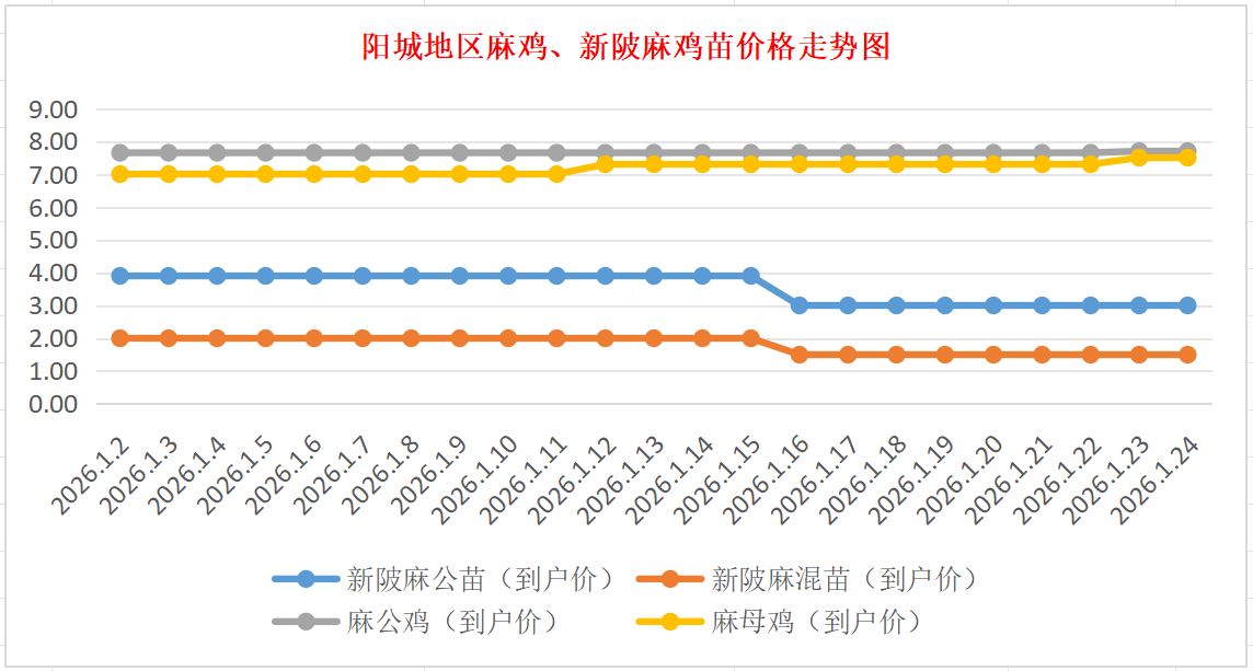 阳城地区麻鸡、新陂麻鸡苗价格走势图(来源:鸡病专业网)