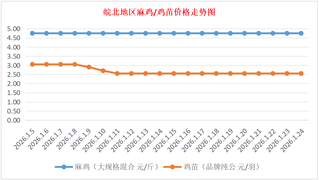 鸡病专业网独家信息:2026年1月24日皖北地区817-麻鸡行情最新走势