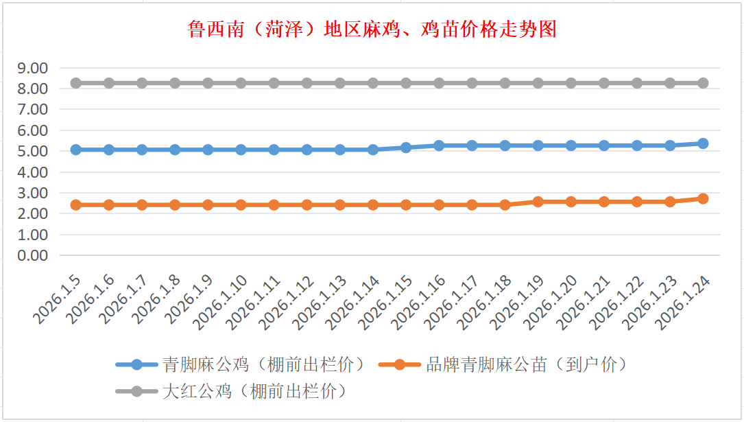 品牌青脚麻公苗:价格上涨,主流到户价2.60-2.80元/羽,涨。