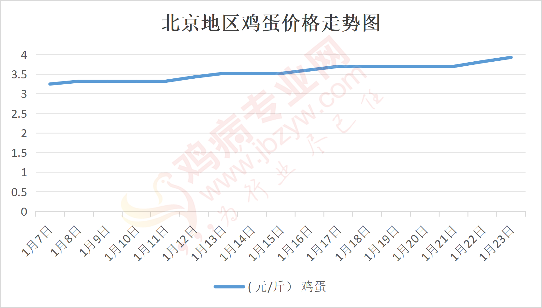 鸡病专业网消息:1月23日,北京大洋路鸡蛋主流批发价格173-174元/44斤,涨,到货5台车,成交灵活,走货一般;回龙观鸡蛋173元/44斤,涨;顺义石门鸡蛋173元/44斤,涨。