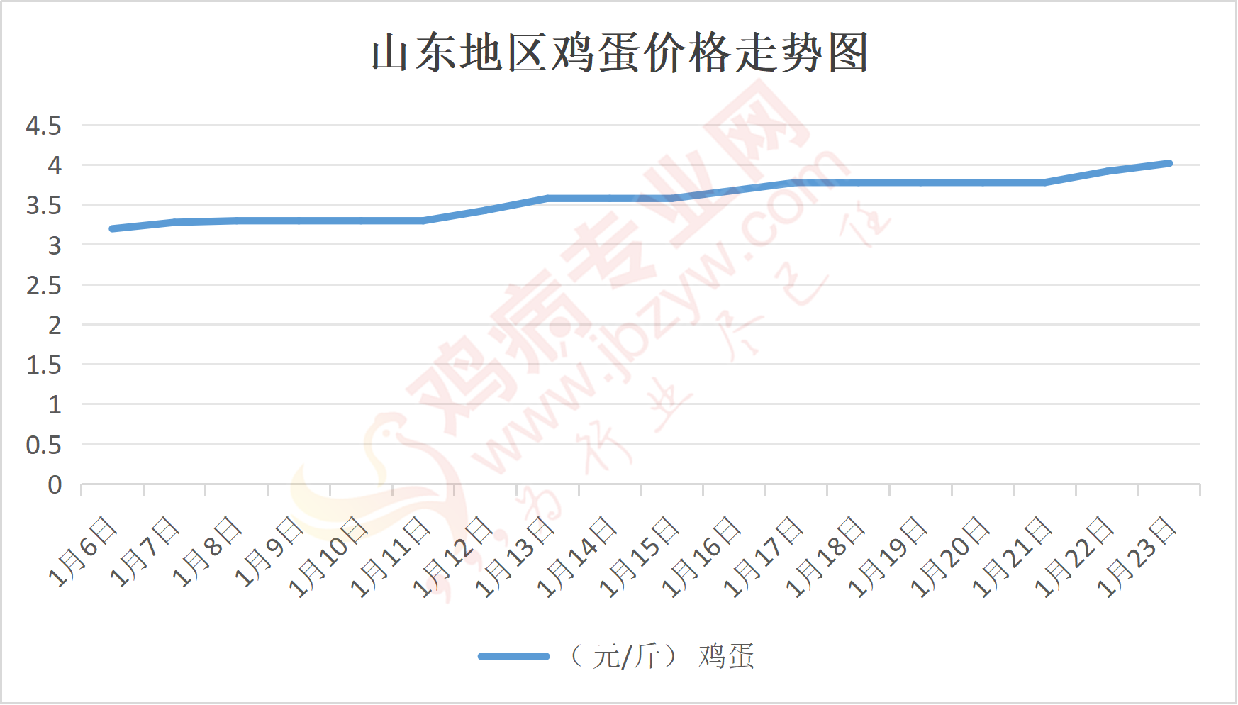 鸡病专业网消息:1月23日,山东地区莱阳鸡蛋4元/斤,涨;青岛鸡蛋4元/斤,涨;诸城鸡蛋4.05元/斤,涨;安丘鸡蛋4元/斤,涨;昌乐鸡蛋4元/斤,涨;寿光鸡蛋4元/斤,涨;昌邑鸡蛋4元/斤,涨;高密鸡蛋4.05元/斤,涨;青州鸡蛋4元/斤,涨;临朐鸡蛋4元/斤,涨;莱州鸡蛋4元/斤,涨;威海鸡蛋4元/斤,涨;临沭鸡蛋4元/斤,涨;沂水鸡蛋4元/斤,涨;沂南鸡蛋4元/斤,涨;莒南鸡蛋4元/斤,涨;兰陵县鸡蛋4元/斤,涨;日照鸡蛋4元/斤,涨;莒县鸡蛋4元/斤,涨;日照辛萁商贸鸡蛋4元/斤,涨;泗水鸡蛋价格117元/30斤,涨;济宁、汶上鸡蛋价格117元/30斤,涨;梁山、东平红蛋价格117元/30斤,涨;枣庄滕州地区鸡蛋混码主流到户118元/30斤,涨;泰安地区新泰鸡蛋价格117元/30斤,涨;菏泽地区曹县主流到户117元/30斤,涨;成武鸡蛋价格117元/30斤,涨;单县到户117元/30斤,涨;聊城莘县117元/30斤,涨;莱芜鸡蛋176元/45斤,涨;济南鸡蛋176元/45斤,涨;德州鸡蛋156元/40斤,涨;滨州鸡蛋156元/40斤,涨。