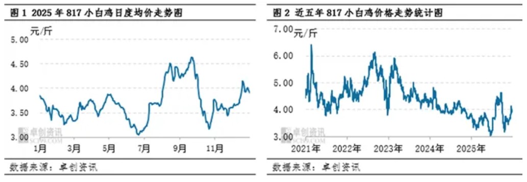 总体来看,2025年817小白鸡市场处于供强需弱运行态势,毛鸡价格滑落至近年低位水平;2026年需求面增速或大于供应面,市场或进入供需平衡态势,毛鸡价格有望于低位实现温和回升。