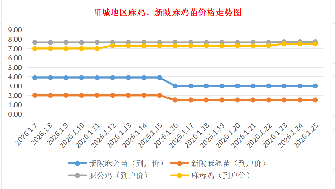 阳城地区麻鸡、新陂麻鸡苗价格走势图(来源:鸡病专业网)