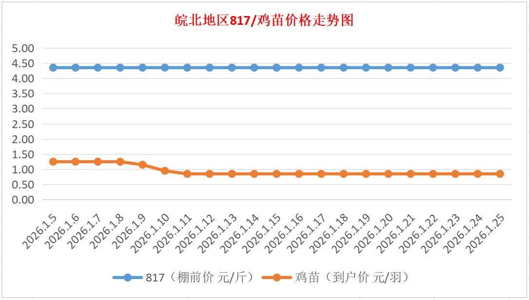 鸡病专业网独家信息:2026年1月25日皖北地区817-麻鸡行情最新走势
